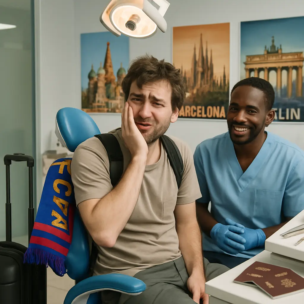 Viaggiare dovrebbe sempre essere un’esperienza entusiasmante e arricchente, ma ci sono casi in cui il sogno si trasforma in incubo, e il protagonista non è né una perdita di bagagli né una tempesta improvvisa. Nel cuore dell’Europa, durante un viaggio perfettamente programmato per godersi il clima spettacolare dei Mondiali, può succedere che sia un mal di denti a rubare la scena. Immagina di preparare il viaggio della vita, fatto di partite epiche, città da scoprire e momenti irripetibili, solo per ritrovarti prigioniero delle poltrone di sei diverse cliniche dentistiche, perso tra anestetici, antibiotici e dolori lancinanti.